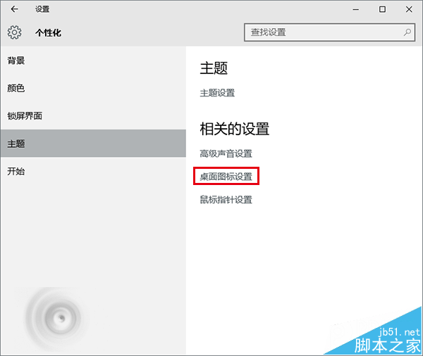 这在Win7/Win8.1中应该说不算个事,但到了Win10中由于传统个性化界面被“设置”取代,导致老用户可能摸不到头脑。其实也挺好找,在个性化→主题→桌面图标设置中,就可以看到熟悉的界面,这个界面还没有“Win10化”,而是经典样式。