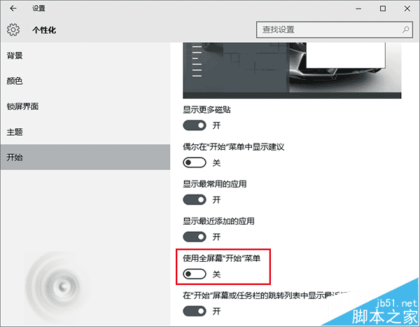 Win10默认启用开始菜单,如果平板电脑想采用开始屏幕模式,除了直接转换为“平板模式”以外,还可以在个性化→开始中,打开“使用全屏幕开始菜单”选项,就可以实现Win10版开始屏幕效果。