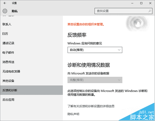 这项功能是微软了解用户使用Win10情况的依据,从这些收集的数据上,微软可以判断自己的产品在某些或者某个用户的电脑上表现如何。提供给微软的数据越多,微软对于Win10的掌握也就越清楚。虽然微软声称这些数据仅限设备数据和软件应用数据,并不包含任何个人隐私,但还是有用户担心自己的信息安全问题。如果不想为微软提供本机使用情况,可以在隐私→反馈和诊断中,把“诊断和使用情况数据”的级别调整到你能接受的等级。但如果你使用Win10预览版,那么这个选项将归微软统一管理,无法调整。Win10正式版用户不受影响。