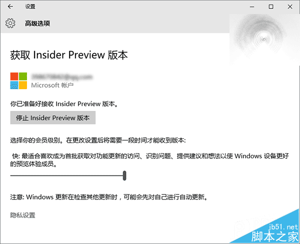 已经安装Win10正式版的用户,可在设置→更新和安全→Windows更新→高级选项的下方开启该系列版本的接收,阿里西西从微软处获知,首次开启24小时后,微软会向你推送预览版更新。这些版本共分为两类(如上图),一是“慢速版”,顾名思义该版本推送频率较低,各个方面都更加稳定;二是“快速版”,该版本推送频率较高,稳定性也相对较差,但能够保证在第一时间用到最新功能。