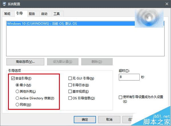 “安全模式”是Windows系统用来排查故障的有力武器,因为很多电脑故障就是由于第三方驱动或者软件引发。在“安全模式”中,系统仅加载最基本的驱动和服务,所以一般情况下不会有问题。在此模式下,可以逐渐开启你认为有问题的软件,以便排查问题所在;或者可以执行一些安全操作,比如查毒杀毒等任务。想要进入该模式,和Win7/Win8.1差不多,在正常启动情况下,按Win(Windows徽标)+R键组合打开“运行”,然后执行msconfig(输入后按回车键),在“系统配置”中选中“安全引导”后,再根据你在安全模式下的任务类型选择需要开启的服务。比如你需要联网,那么就选最后一个“网络”,不需要这些就可以直接使用默认的“最小”,然后点击“确定”后重启电脑即可。