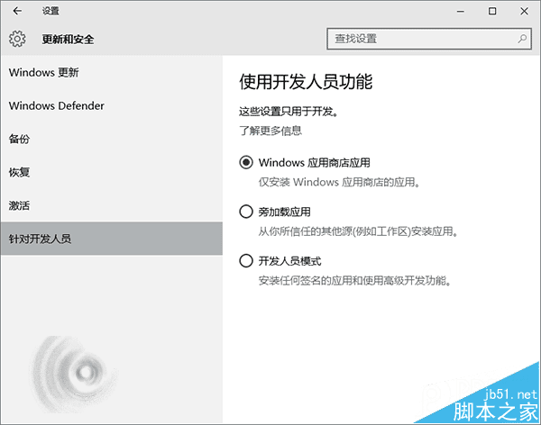 59、Win10“设置”中“针对开发人员”选项有什么用?