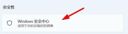 3、右侧安全性下,点击Windows 安全中心(适用于你的设备的防病毒、浏览器、防火墙和网络保护)