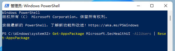 Get-AppxPackage Microsoft.SecHealthUI -AllUsers | Reset-AppxPackage