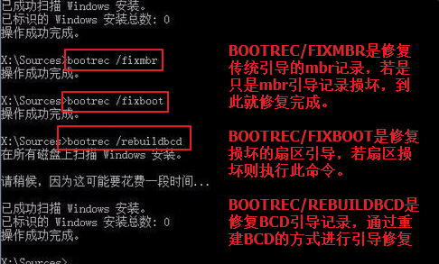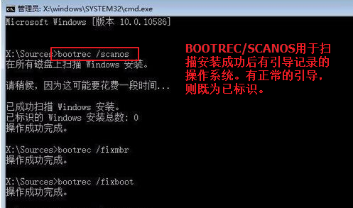 4、修复 Windows 10 的主引导记录并重建 BCD 配置文件的命令: