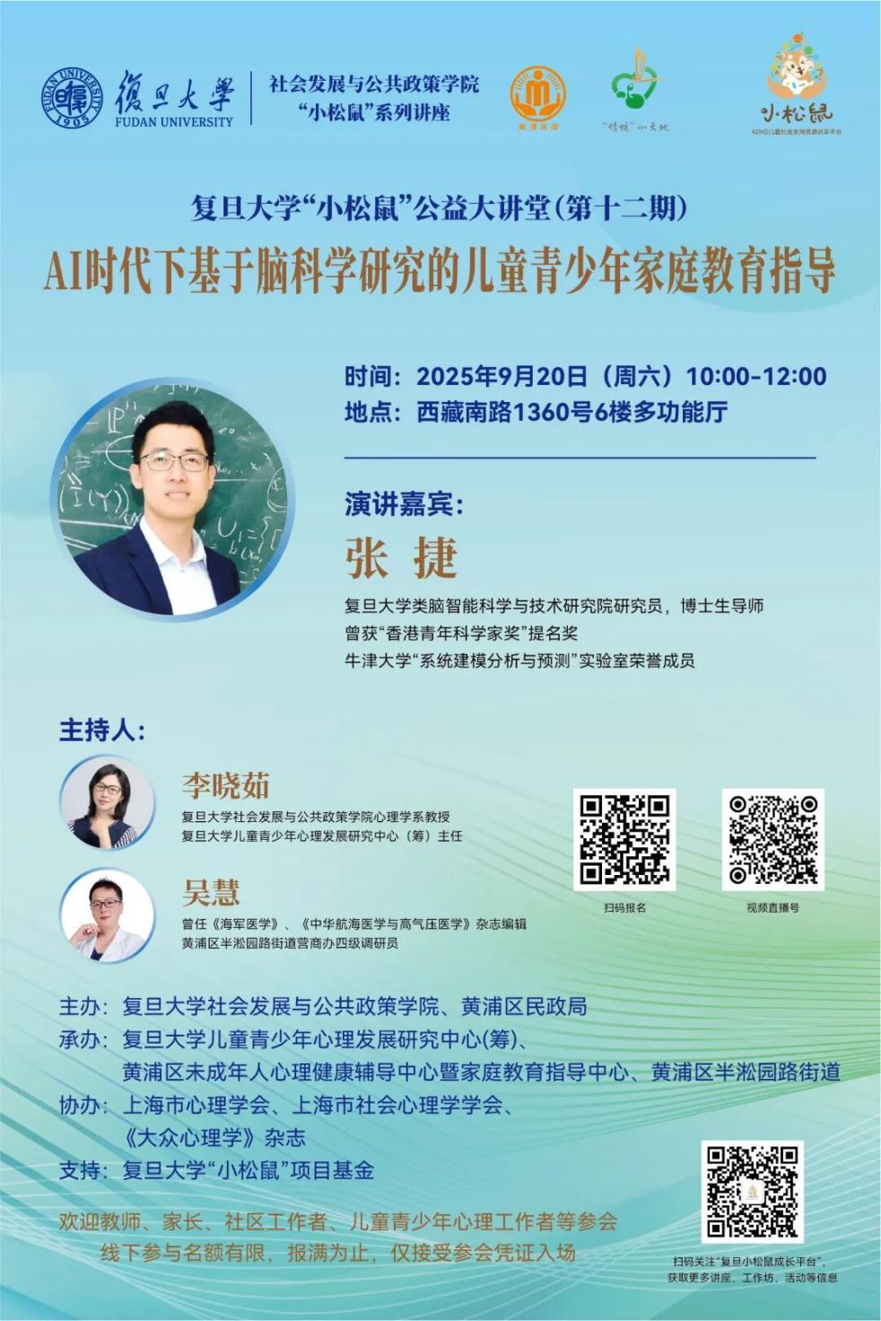 参与方式:西藏南路1360号6楼多功能厅或复旦小松鼠成长平台线上直播