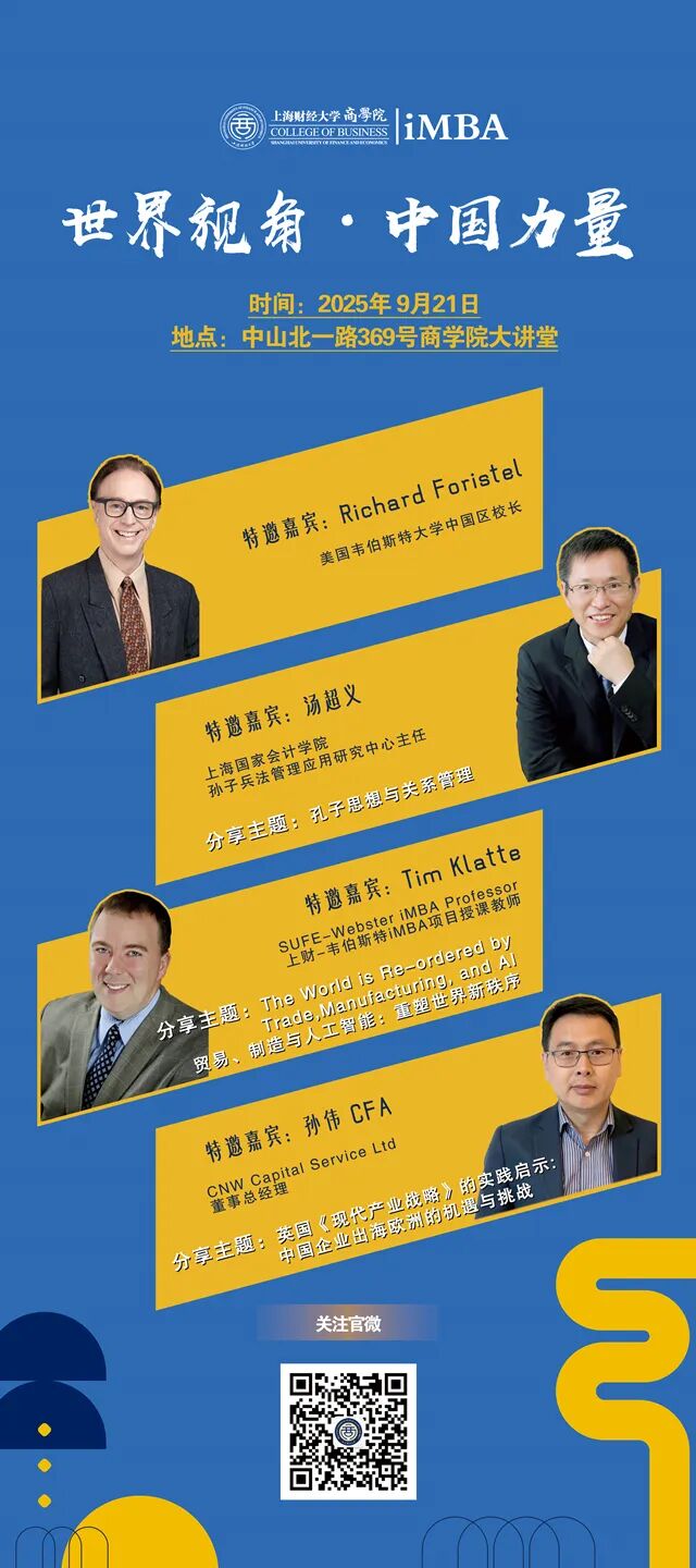参与方式:上海财经大学中山北一路校区商学院大讲堂
