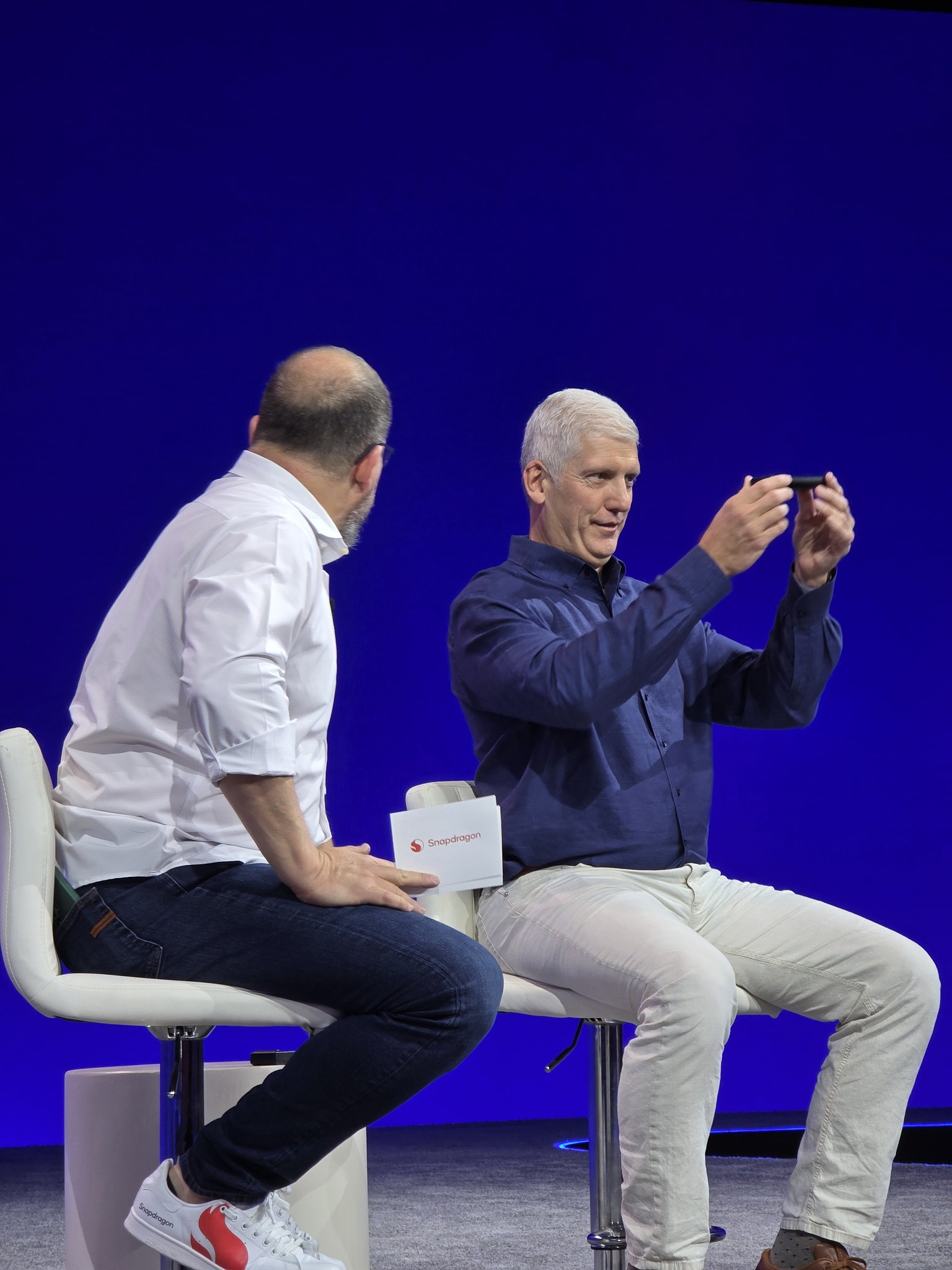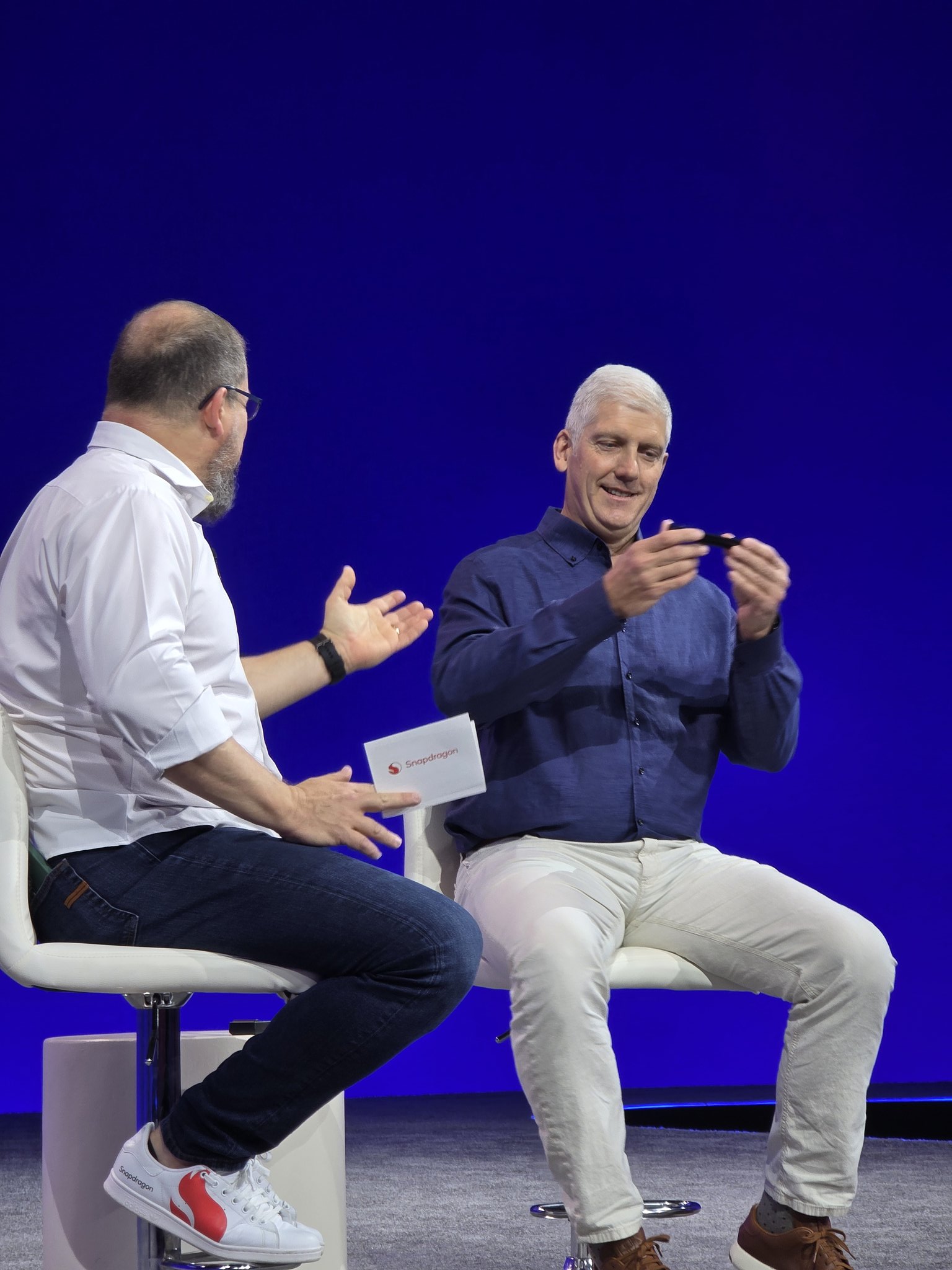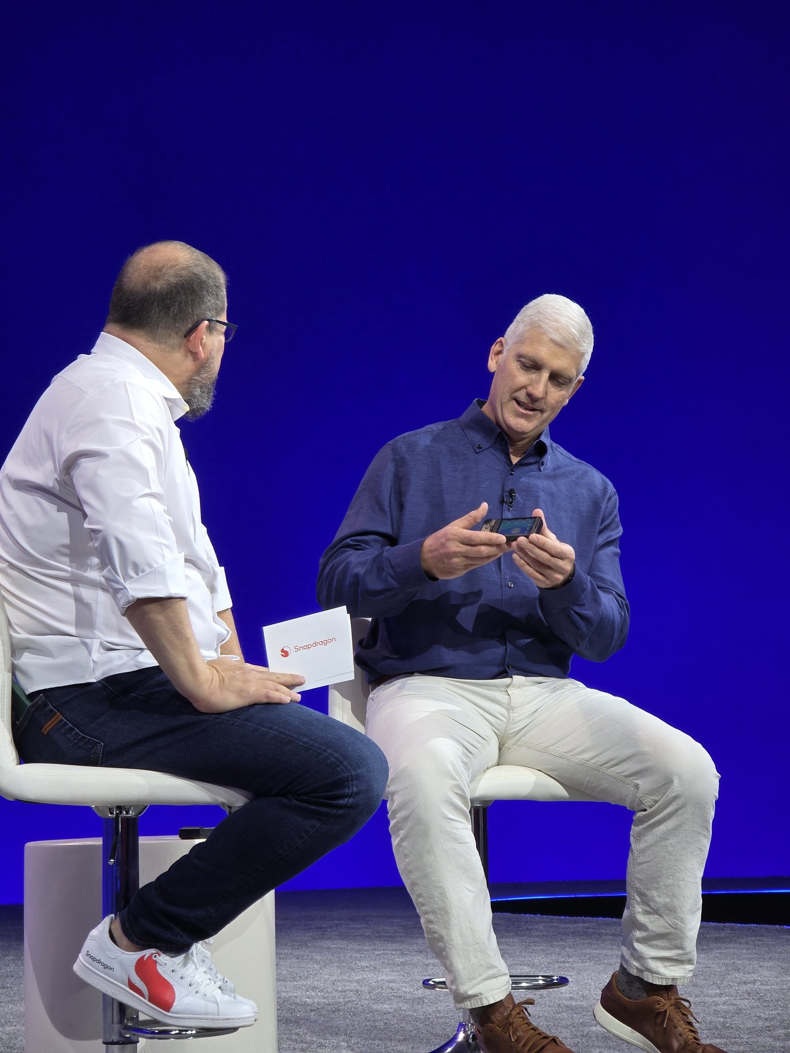 alixixi 9 月 24 日消息,在今天召开的高通骁龙 2025 峰会主题演讲中,高通首席执行官克里斯蒂亚诺・阿蒙(Cristiano Amon)邀请谷歌平台与设备高级副总裁里克・奥斯特罗(Rick Osterloh),谈到了高通和谷歌的合作,并展示了全球首款安卓手机 HTC G1。