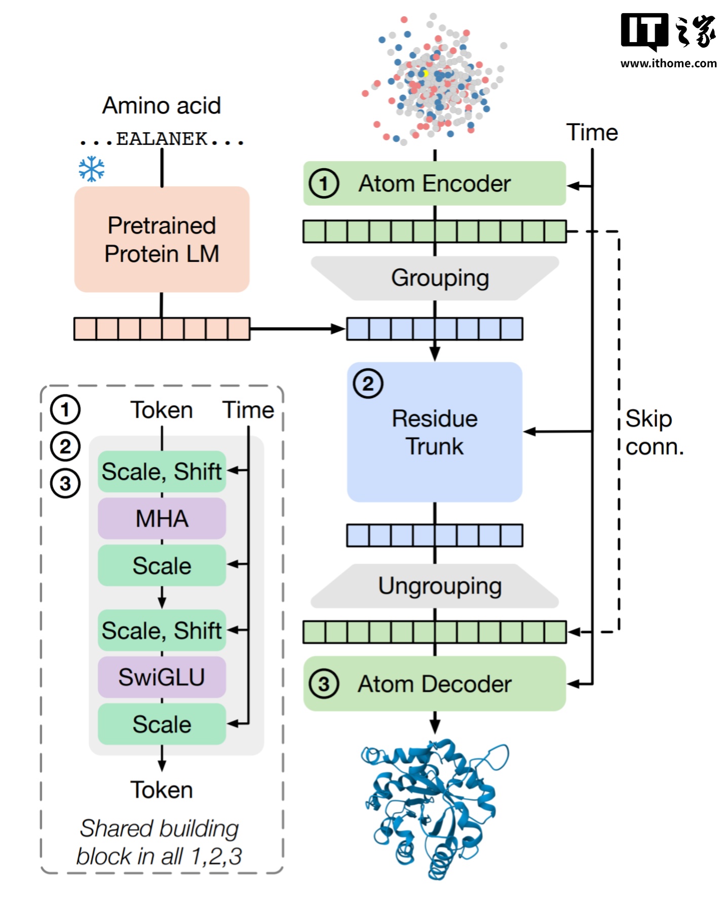该媒体指出 AlphaFold2(Google DeepMind 的突破性 AI 模型)、RoseTTAFold 等传统模型虽然具备更高的精度,但由于依赖多序列比对、三角更新等计算密集的特定架构,训练与推理成本高昂。苹果团队希望通过简化结构,降低硬件门槛,让更多科研团队受益。