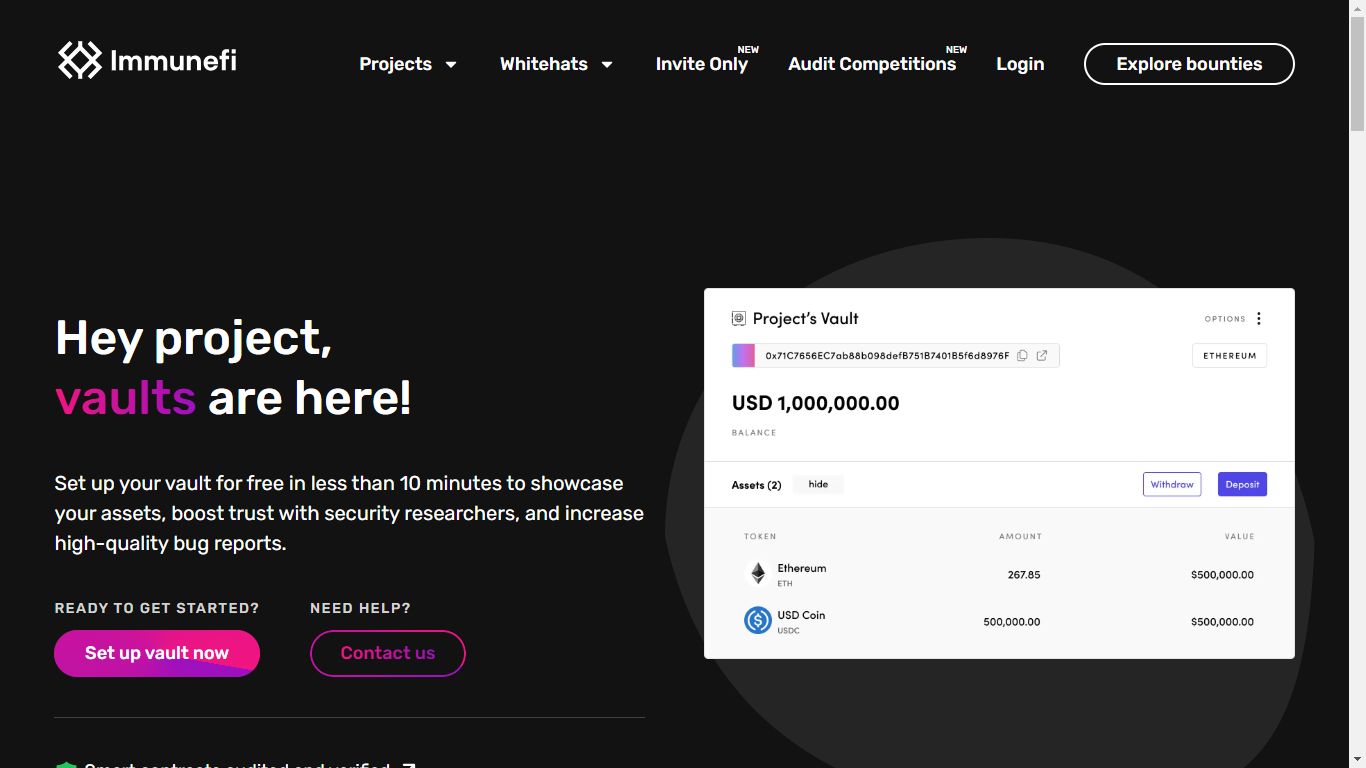 ImmuneFi Vaults 旨在通过帮助白帽黑客和项目方安全管理漏洞赏金资产和支付,提高透明度和信任度。项目方可以随时存入或提取资金,赏金余额对白帽黑客可见。这种透明性有助于建立信任,因为白帽黑客在确信项目有足够资金支付赏金的情况下,会更积极提交高质量的漏洞报告。