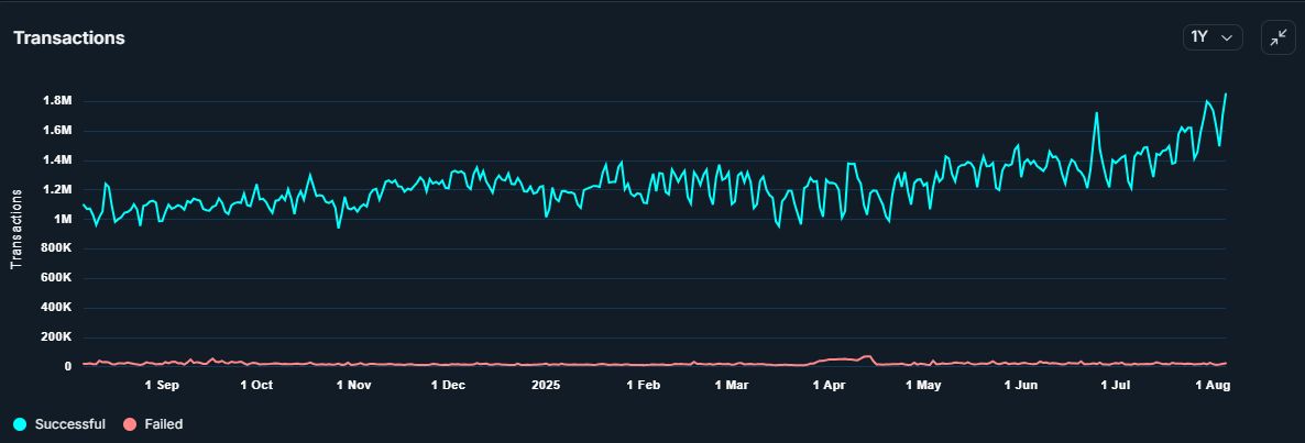 以太坊网络交易的一年图表。来源:Nansen