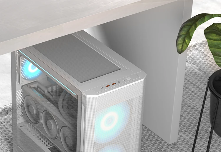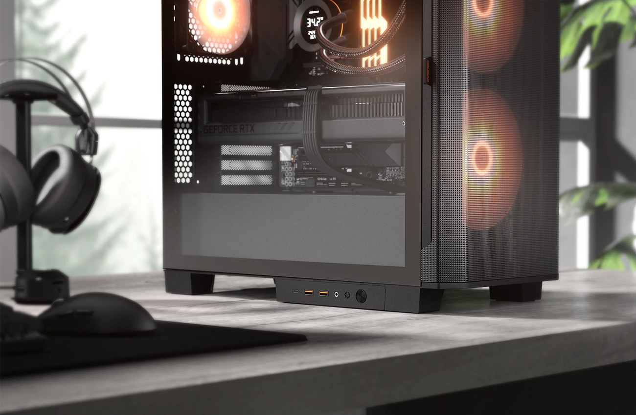 该机箱拥有多项 DIY 友好设计,包括可拆卸的顶板框架、可在顶部前方或左侧底部前方放置的模块化 I/O 面板 (1× USB-C 10Gbps + 2× USB-A 5Gbps)、支持显卡竖装。