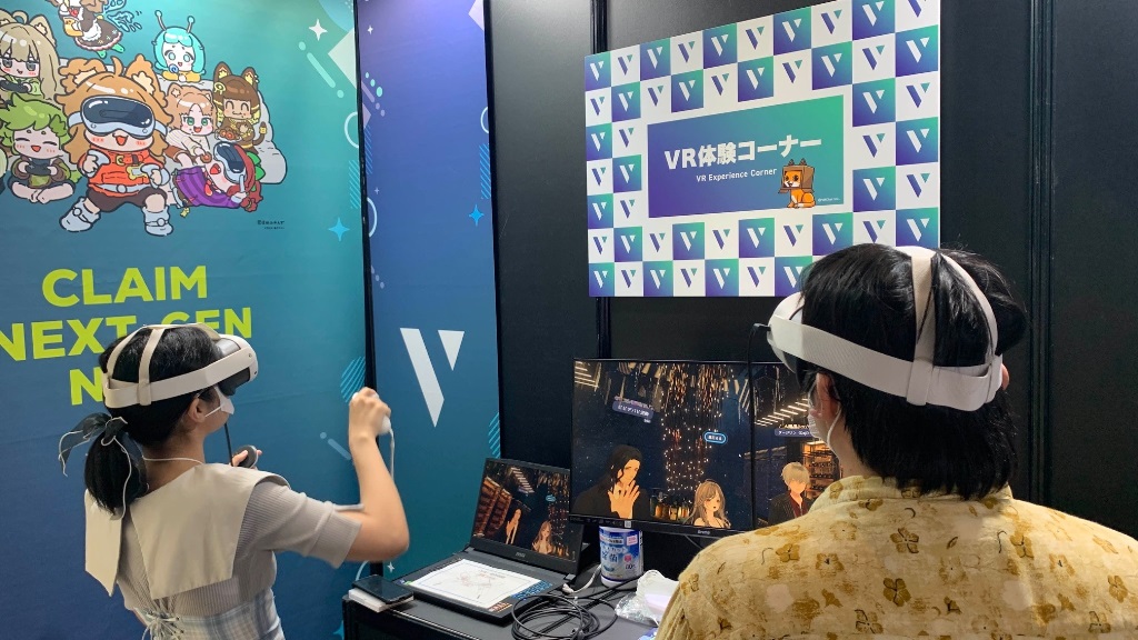 株式会社V是日本国内为元宇宙/XR领域提供业务支持与制作实绩的企业,在VRChat、Roblox等平台运营着大型社区。他们本次在商业解决方案专区出展,现场提供了在VRChat里开发的项目,以寻求合作机会。
