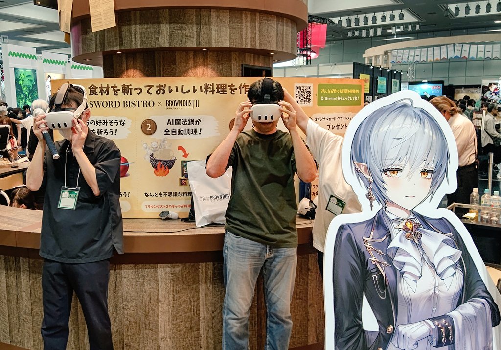 VR IMAGINATORS是一家日本小型工作室,他们此次与韩国公司NEOWIZ合作,为后者运营的RPG《棕色尘埃2》(Brown Dust 2)打造出限量合作版《Sword Bistro VR》。玩家能为游戏中充满魅力的女性角色们制作料理,利用AI功能还可以基于所用食材生成料理的独特图片。