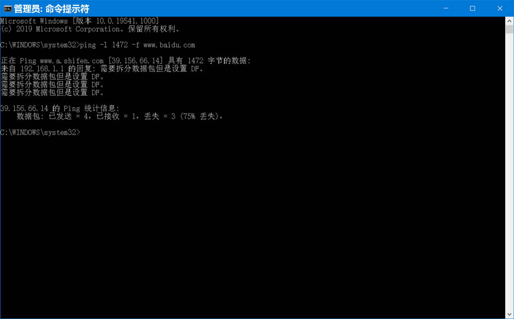 C:WINDOWSsystem32>ping -l 1472 -f www.baidu.com