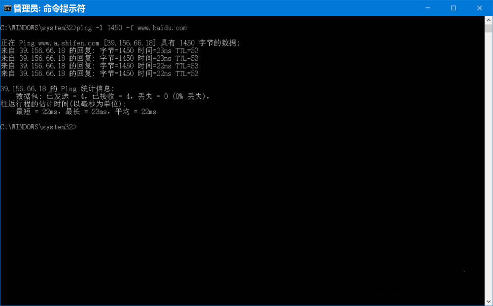 C:WINDOWSsystem32>ping -l 1450 -f www.baidu.com