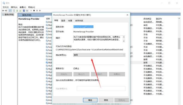 7、双击打开或右键点击属性,在启动类型里选择禁用。注意两个服务全部禁用。