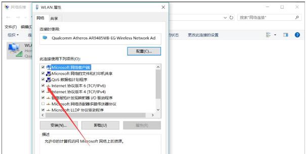 3、右击属性,取消选择“Internet协议版本6”。