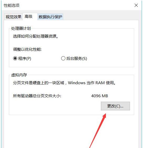 2、在高级选项卡中点击“更改”按钮。