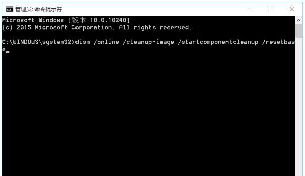 4、清理WinSxS。右击开始按钮,打开“命令提示符(管理员)”,输入下面的命令,回车等待其自动完成dism /online /cleanup-image /startcomponentcleanup /resetbase