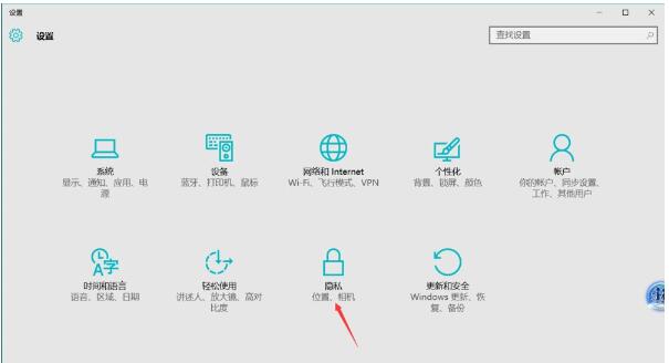 2、开始菜单点击设置,选择隐私。