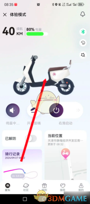 1、进入手机的爱玛出行APP页面,点击下面的爱车选项。