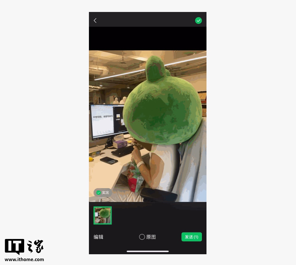 官方表示,用户打开聊天框-照片,即可选中并发送包含动态画面和声音的实况照片,选中的照片左下角带有“实况”标记。