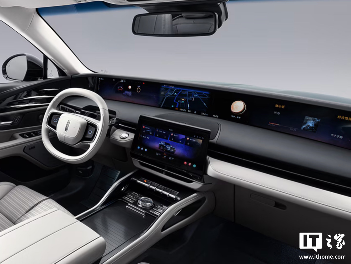 座舱方面,该车延续环抱式造型风格,配备 23.6 英寸贯穿式屏幕、双辐式多功能方向盘以及悬浮式中控屏,采用按键式换挡机构,车辆标配 540 度全景影像、前排座椅加热 / 通风 / 按摩、48 英寸中控台环绕屏、ANC 主动降噪等。