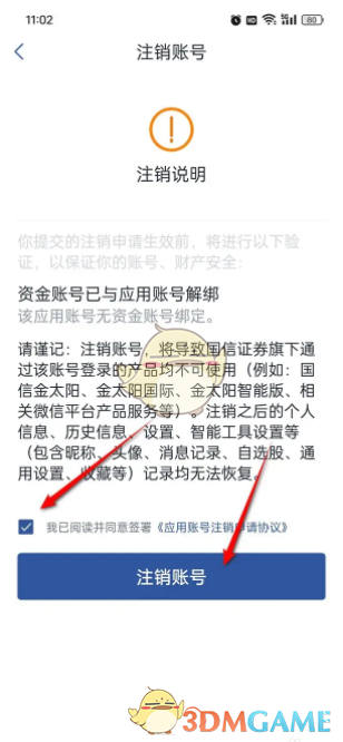 5、勾选同意注销协议,点击“注销账号”即可前往将账号注销了。