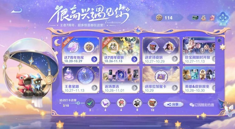 1、2022周年庆回城特效是【星河入梦】,并且还将提取主要元素并在此基础上延展头像框、击败特效、拖尾特效、荣耀播报等系列表现道具,此全套表现道具都将在周年庆期间通过游戏内活动免费产出。