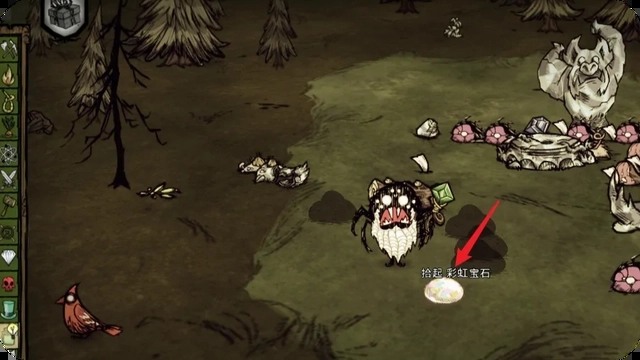 2、彩虹宝石代码相关:c_give(“opalpreciousgem”,1)指的是彩虹宝石会按所输数量1自动出现在物品栏,如果背包满了则会掉落在地上;c_spawn(“opalpreciousgem”,1)则是指彩宝石会出现在鼠标指针的位置。