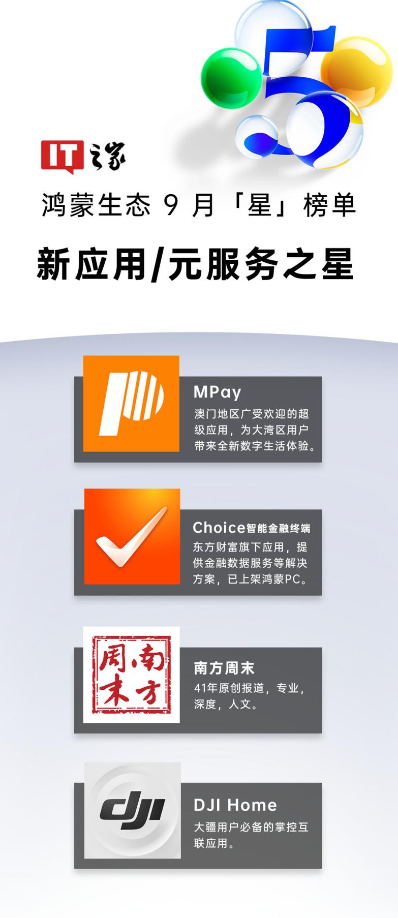 除此以外,9 月份还有许多新应用 / 元服务加入鸿蒙大家庭,并且取得了用户们的好评,比如澳门地区广受欢迎的超级应用 MPay,为大湾区的鸿蒙用户带来了便捷的数字生活体验,还有东方财富旗下的 Choice 智能金融终端也上架了鸿蒙 PC,为金融认识提供了金融数据等一系列服务,这样垂直细分的应用加入鸿蒙,无疑是鸿蒙生态不断扩展的一个佐证。