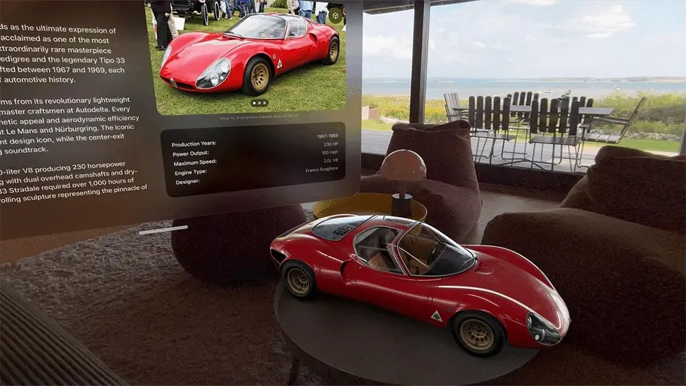 Apple Vision Pro迎来了一款极具沉浸感的visionOS应用——Caradise,它将你的生活空间变成一座可交互的虚拟汽车博物馆。通过该应用,用户可以将法拉利、布加迪、阿斯顿·马丁、保时捷、阿尔法·罗密欧等品牌的经典与现代车型,以真实尺寸或微缩比例精准投射到房间中,实现前所未有的空间化汽车体验。