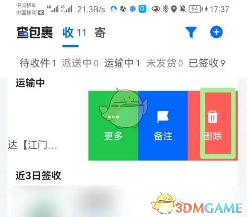 打开菜鸟裹裹APP,在首页或“查看所有包裹”页面找到要删除的包裹,点击包裹右侧的“三点”图标,在弹出菜单中选择“删除”,系统弹出确认框后点击“确认删除”即可,也可向左滑动包裹信息,点击出现的“删除”按钮,再确认删除。