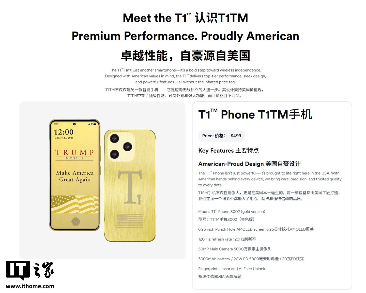 值得一提的是,今年 6 月,特朗普移动公司已不再宣称 T1 手机“美国制造(made in the USA)”。取而代之的是更为谨慎的表述:“每台设备背后都有美国团队的参与(With American hands behind every device)”,且手机“秉持美国价值观设计(Designed with American values in mind)”。