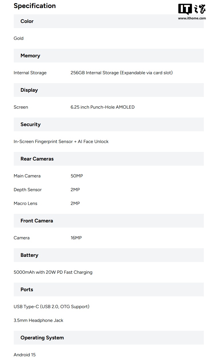 发售日期并非这款手机唯一变更的信息。T1 手机的屏幕尺寸从原定的 6.78 英寸调整为 6.25 英寸,参数表中也不再出现那句令人困惑却又搞笑的“5000 毫安时长续航摄像头”描述。