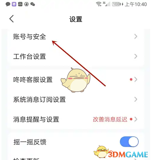 3、点击箭头指向的“账号与安全”选项