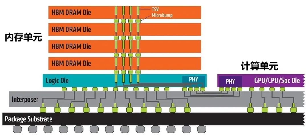 HBM(High Bandwidth Memory,高带宽内存),就是一种尝试解决“存储墙”和“功耗墙”问题的新型存储技术。像英伟达这样的芯片厂商,采用 3D 封装等先进工艺,将存储单元和计算单元封装在一起,通过缩短两者之间的距离,提高数据传输速度,同时降低能耗。