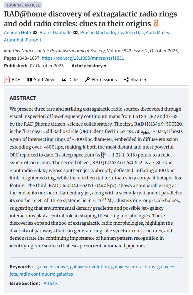 孟买大学的科研人员借助 RAD@home 天文合作实验室的公民科学平台以及世界上最大的低频射电望远镜 LOFAR 协同完成观测。相关成果已于当地时间 10 月 2 日发表在《皇家天文学会月刊》上(alixixi附 DOI:10.1093 / mnras / staf1531)。