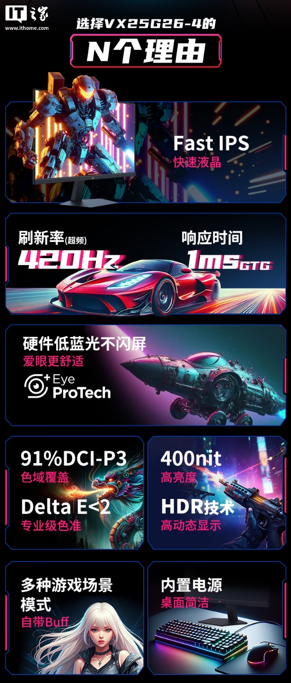 alixixi 10 月 3 日消息,优派 VX25G26-4 显示器现已开启预售,尺寸为 24.5 英寸,主打 1080P 420Hz 电竞体验,预售到手价 1599 元。