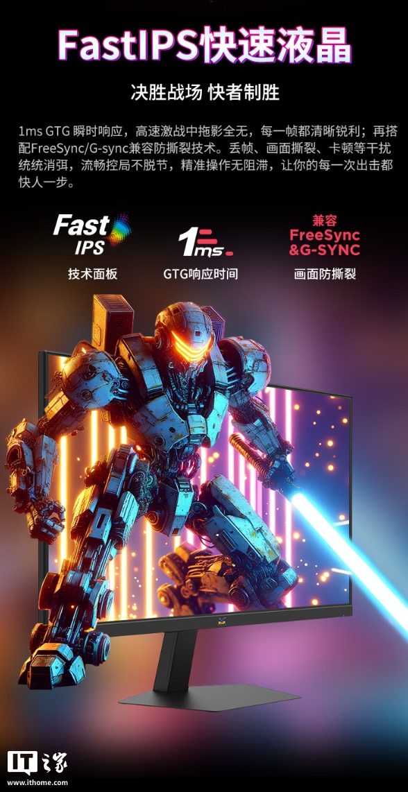 据介绍,这款显示器的原生刷新率为 400Hz,超频刷新率可达 420Hz,可在 FPS 游戏中“锁定毫秒之差”,面板尺寸为 24.5 英寸,相比 27 英寸显示器视觉位移更短,可让视野更加集中,适合学生党和宿舍小桌面使用,GTG 响应时间低至 1 毫秒,兼容 G-Sync、FreeSync 等防撕裂技术。