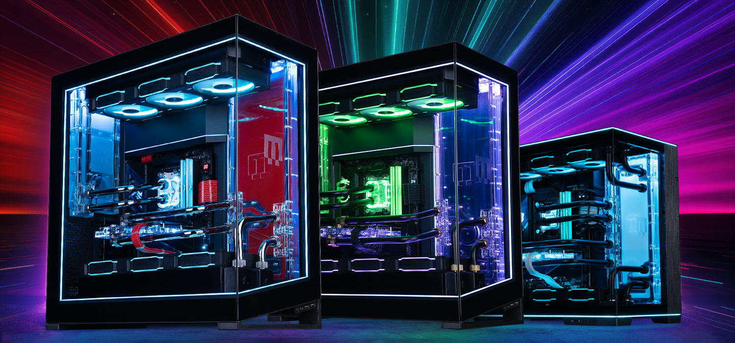 第四代 APEX RUSH 则基于联力的 O11 EVO RGB 机箱打造,用一块水道板连接 2 个冷头和 2 组 360 分体冷排。