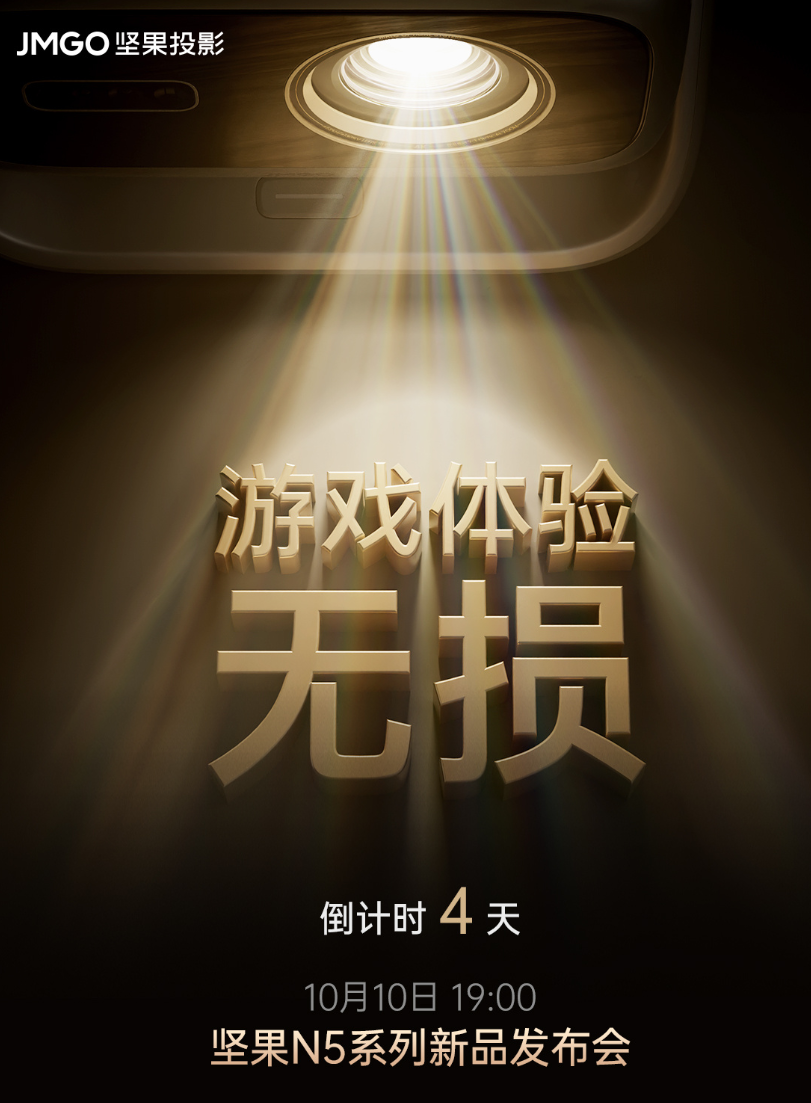 alixixi 10 月 6 日消息,坚果投影 N5 系列将于 10 月 10 日 19:00 发布,官方预热称其“游戏体验无损”“软硬件双满配,为玩家体验而生”。