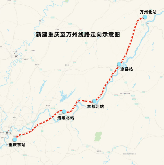alixixi注:渝万高铁是我国“八纵八横”高铁网包(银)海、京昆通道的组成部分,线路起自重庆东站,途经重庆市南岸区、巴南区、涪陵区、丰都县、忠县至万州区,接入万州北站。