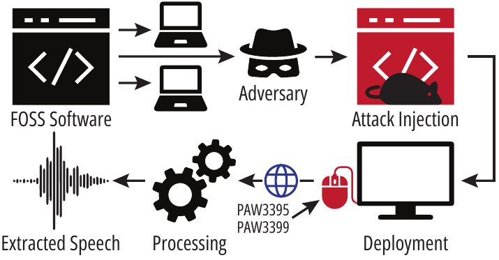 将振动还原为语音的过程分为几个步骤。首先,需要通过一个受感染的(或恶意的)应用程序来访问并提取鼠标传感器的原始运动数据包,并从中分离出与语音相关的振动信号。