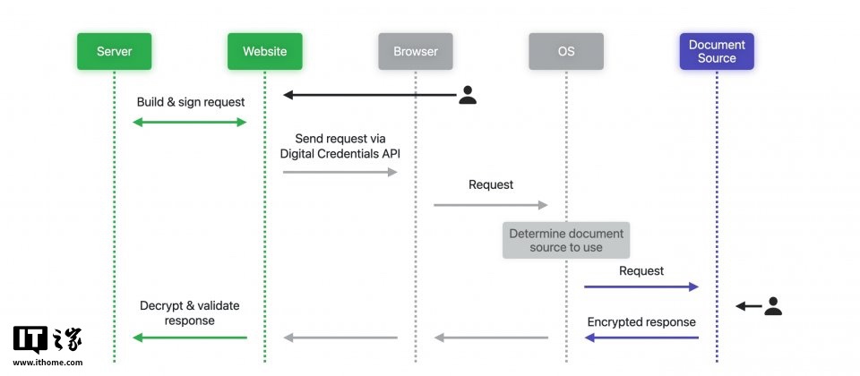 alixixi获悉,Safari 26 采用 W3C Digital Credentials API 作为 JavaScript 接口,数据请求与回传遵循 ISO / IEC 18013-5 与 18013-7 所定义的 mDocs 格式,并可在跨设备场景中配合 FIDO CTAP 运作,整个流程基于标准化加密与签章机制,有望取代传统的证件照上传与人工比对过程,可显著提升身份验证的一致性与可扩展性。