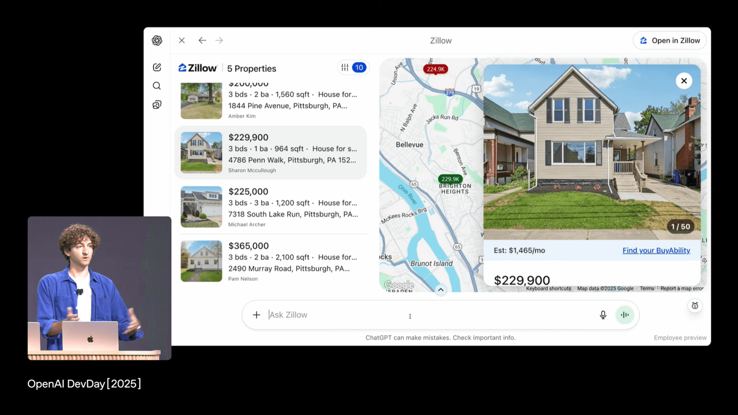 OpenAI 在本次活动中推出全新的 Apps SDK(应用软件开发工具包),目标推动 ChatGPT 从一个聊天工具向一个成熟的第三方应用平台转型。