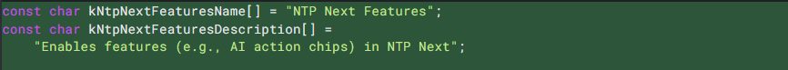 该媒体挖掘 Chromium 源码,发现了名为“ntp-next-features”的新实验性 Flag,在描述中明确指出“在 NTP Next 中启用新功能(例如,AI AI Action Chips)”。alixixi附上相关截图如下: