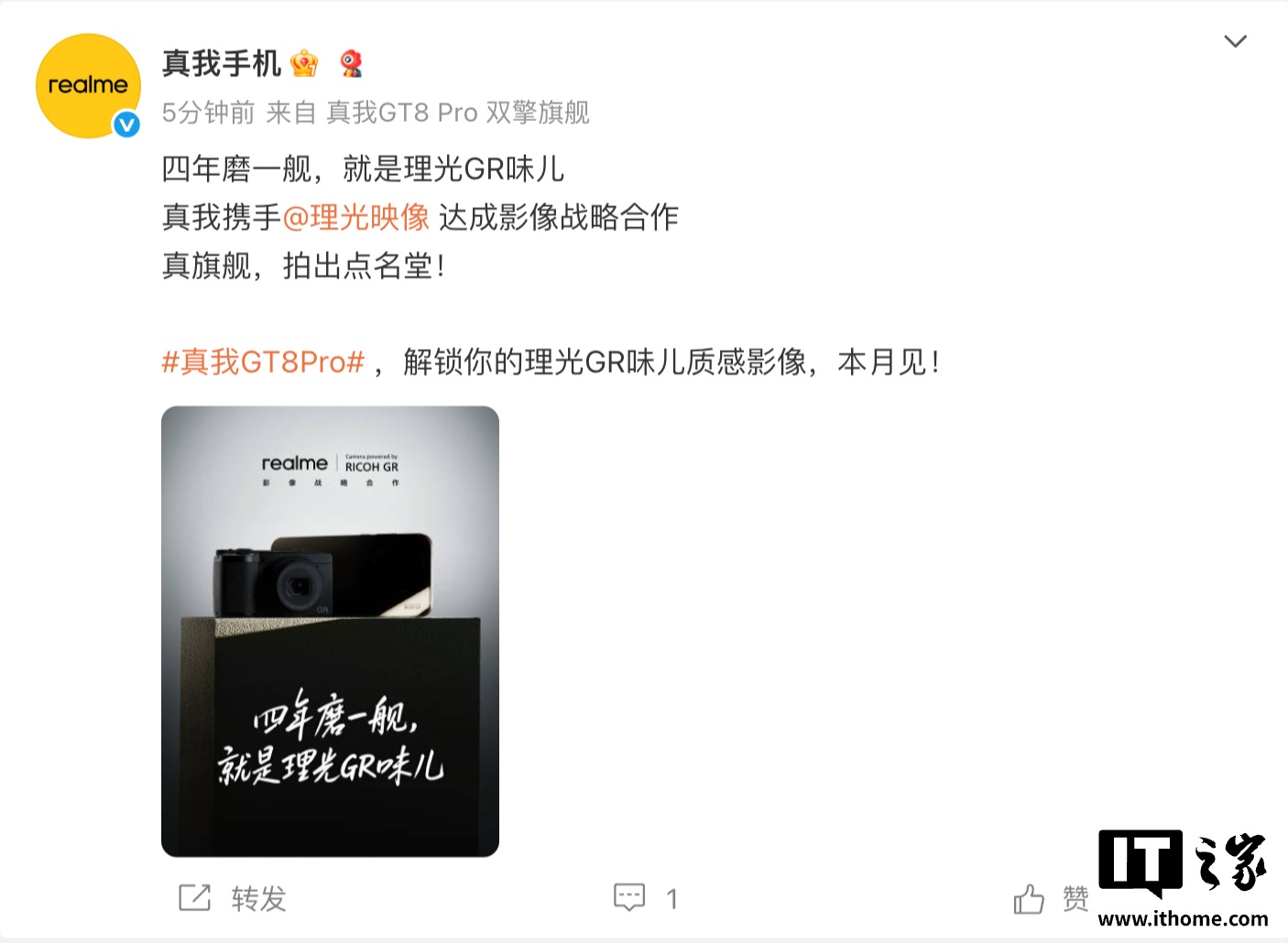 alixixi 10 月 9 日消息,真我 realme 副总裁、全球营销总裁、中国区总裁 @徐起Chase 今天上午宣布,真我与理光映像正式达成影像战略合作。