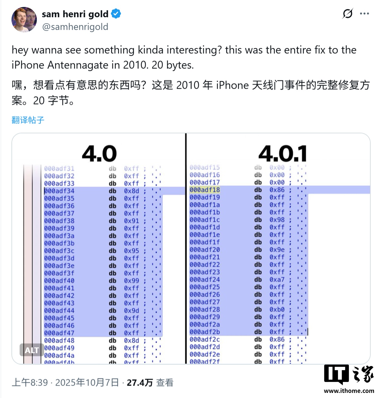 时隔 15 年,软件工程师萨姆・亨利・戈尔德通过对比固件代码,终于揭开了当年苹果修复该问题的具体技术细节。